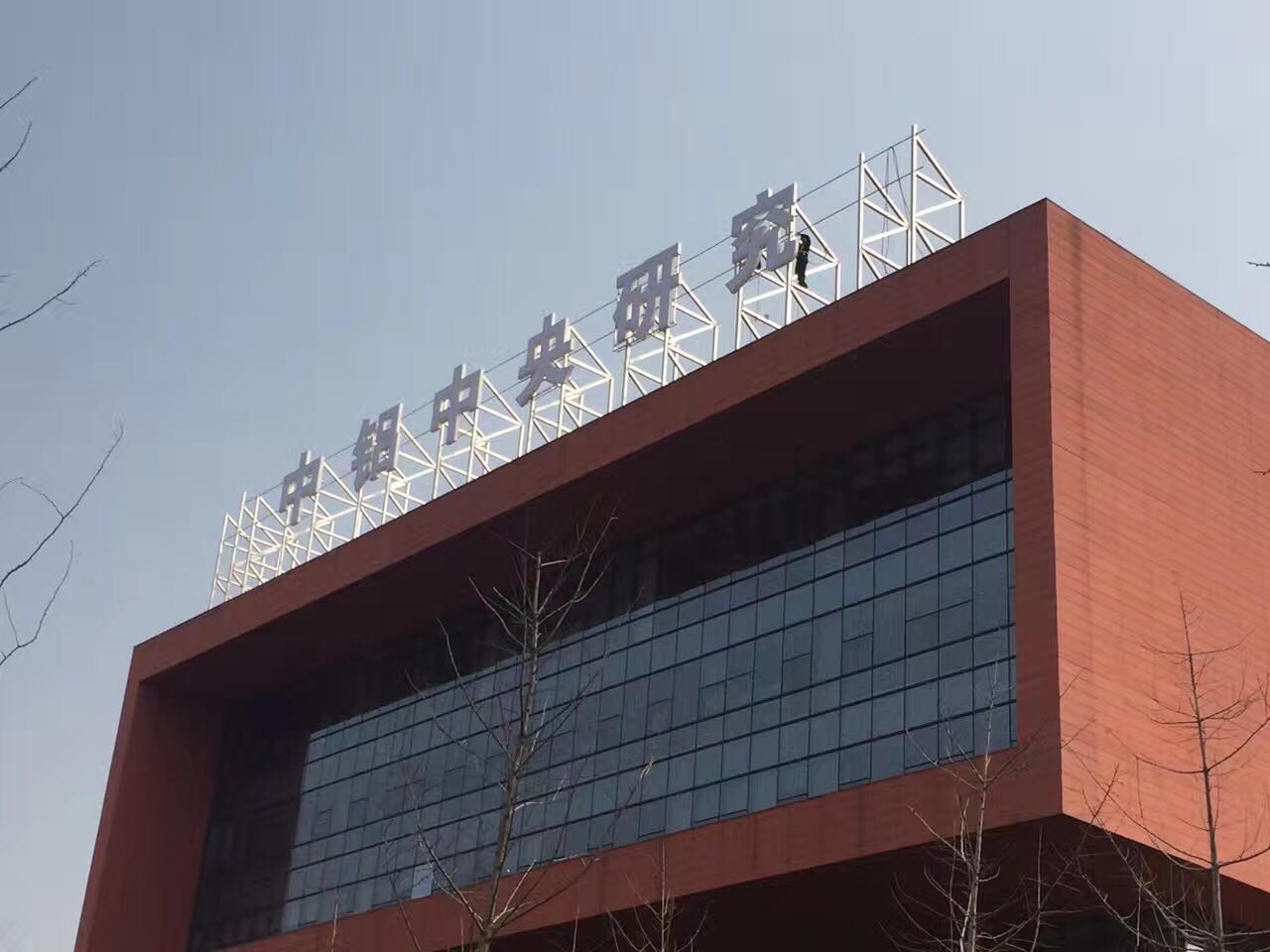 研究院楼顶发光字,不锈钢发光字,亚克力发光字制作安装现场